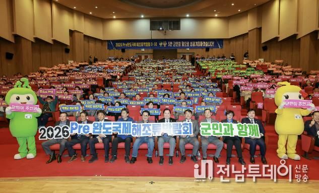 전남투데이 김용희 기자 | 완도군은 3월 13일 완도문화예술의전당에서 ‘2026 Pre완도국제해조류박람회’ 개막을 50일 앞두고 성공적인 개최를 염원하는 군민 결의 대회를 열었다.