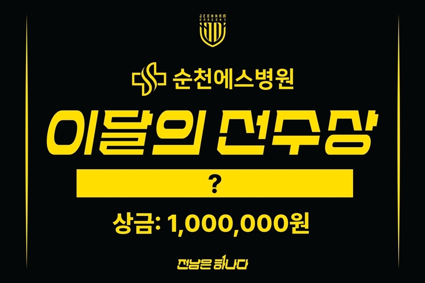 이와 함께 2026시즌부터 신설되는 ‘이달의 선수상’ 상금을 순천에스병원이 후원한다. 이에 따라 해당 상은 ‘순천에스병원 이달의 선수상’으로 운영된다. 월드컵 휴식기로 인해 1경기만 치러지는 6월을 제외하고, 3~5월 및 7~11월까지 총 8회에 걸쳐 월 100만원씩 시상하며, 시즌 종료 후에는 시즌 MVP에게 200만원을 별도로 수여한다. 총 후원 규모는 1,000만원 상당이다.