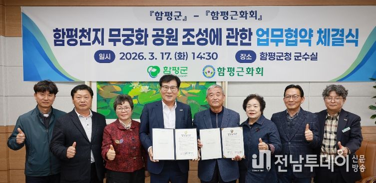 함평군은 17일 “함평천지 무궁화 공원 조성을 위한 함평군과 함평근화회 간 업무협약 체결식이 이날 오후 군수실에서 열렸다”고 밝혔다.