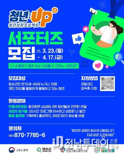 이번 사업은 전남고용노동연구원이 운영을 맡아 추진되며, 2025년에 이어 2026년에도 계속 추진되는 청년 지원사업이다. 특히 올해는 운영기관이 화순군 청년센터에 사무실을 두고 활동하면서 청년센터를 거점으로 다양한 프로그램을 연계해 추진할 계획이다.