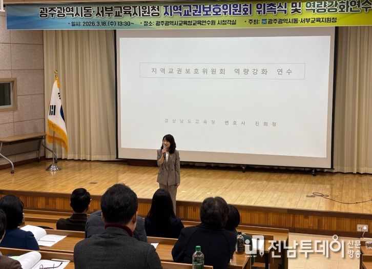 전남투데이 김경민 기자 | 광주광역시동·서부교육지원청은 18일 광주시교육청교육연수원에서 ‘제2기 지역교권보호위원회’ 위원을 위촉했다.