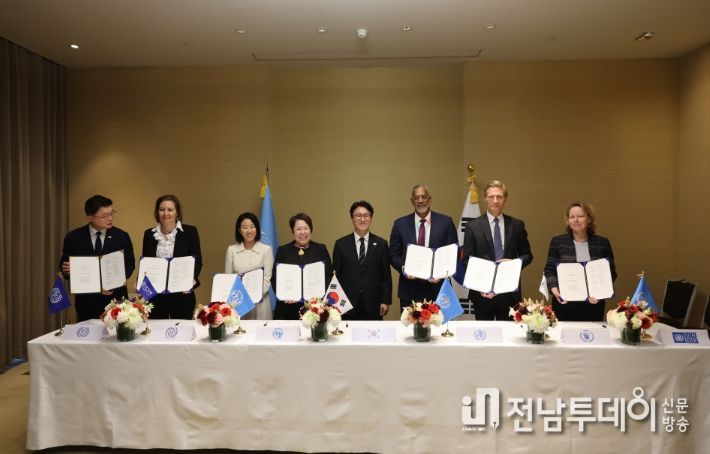 전남투데이 정홍균 기자 | 김민석 국무총리는 현지시간 3월 17일 17시, 스위스 제네바의 인터콘티넨탈 호텔에서, 6개 UN 기구(ILO(국제노동기구), IOM(국제이주기구), ITU(국제전기통신연합), WHO(세계보건기구), WFP(세계식량계획), UNDP(유엔개발계획))와 함께 ‘글로벌 AI Hub’ 협력의향서(Letter Of Intent) 서명식을 개최했다.