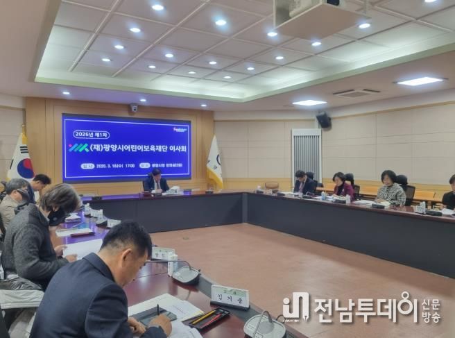 전남투데이 조평훈 기자 | (재)광양시어린이보육재단은 지난 3월 18일 광양시청 창의실에서 2026년 제1차 이사회를 개최했다고 밝혔다.