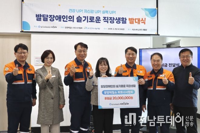 이번 사업은 광양제철소 파트너사협회(회장 김윤철)의 후원으로 추진되며, 서산나래 소속 발달장애인 근로자 22명을 대상으로 건강한 직장생활과 지속적인 근로활동을 지원하기 위해 후원금 2천만 원이 전달됐다.
