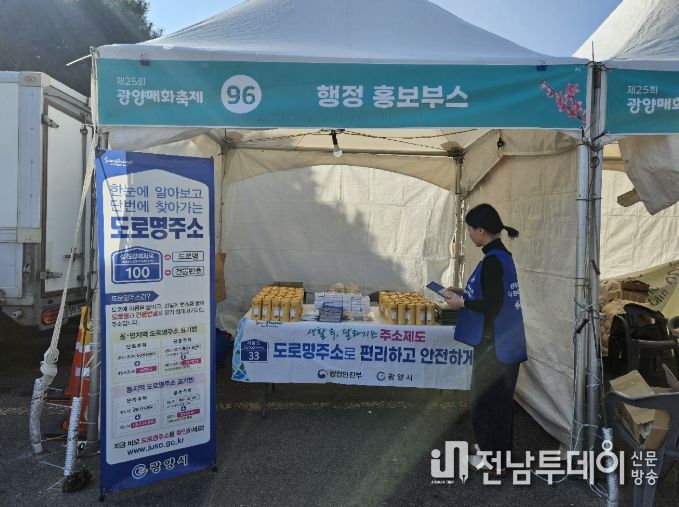 전남투데이 조평훈 기자 | 광양시는 지난 3월 19일 제25회 광양매화축제 현장에서 관광객과 시민을 대상으로 도로명주소의 원리와 상세주소 부여 제도를 집중 홍보했다고 밝혔다.