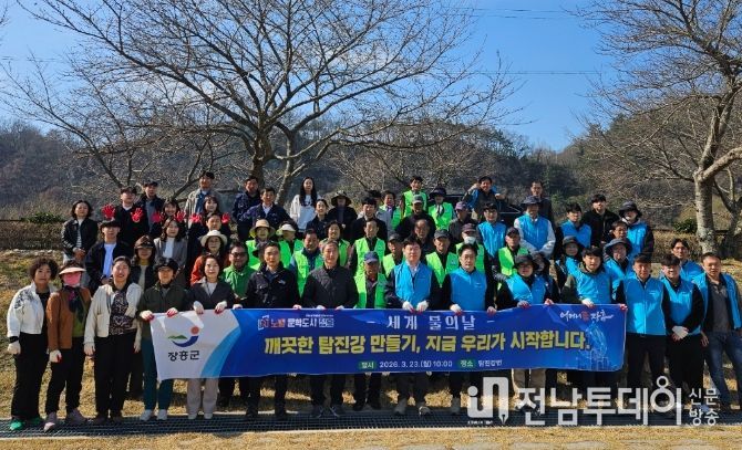 전남투데이 김용희 기자 | 장흥군은 2026년 세계 물의 날(3월 22일)을 맞아 물의 소중함을 되새기고 안전한 식수원 확보를 위한 환경보전 실천의 일환으로, 지난 3월 23일 탐진강변 일원에서 환경정화활동을 실시했다고 밝혔다.