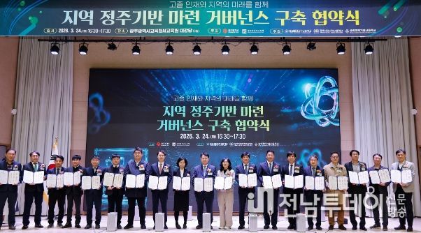 전남투데이 김경민 기자 | 광주시교육청과 광주시는 24일 광주AI교육원 대강당에서 이정선 광주시교육감, 김기숙 광주시 교육청년국장 등이 참석한 가운데 ‘고졸 인재와 지역의 미래를 함께, 지역 정주기반 마련 거버넌스 구축 협약식’을 개최했다.