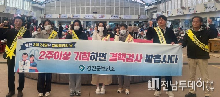 전남투데이 박동운 기자 | 강진군이 3월 24일 ‘결핵 예방의 날’을 맞아 군민들의 결핵 예방수칙 실천을 독려하고 결핵 조기검진의 중요성을 알리고자 지난 24일 강진읍 시장에서 결핵 예방·퇴치 캠페인을 실시했다.