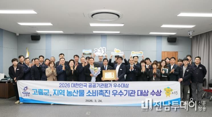 전남투데이 조평훈 기자 | 고흥군은 지난 24일 국회의원회관 대회의실에서 열린 ‘2026년 대한민국 공공기관평가 시상식’에서 지역 농산물 소비 촉진 우수기관으로 선정돼 우수대상을 수상했다고 밝혔다.