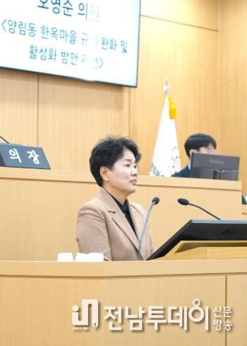 전남투데이 김경민 기자 | 오영순 광주 남구의회 의원은 25일 제319회 임시회 1차 본회의에서 5분 발언을 통해 양림동 한옥마을의 과도한 규제로 인해 지역 활력이 저해되고 있다며, 규제 완화와 활성화 방안을 제시했다.