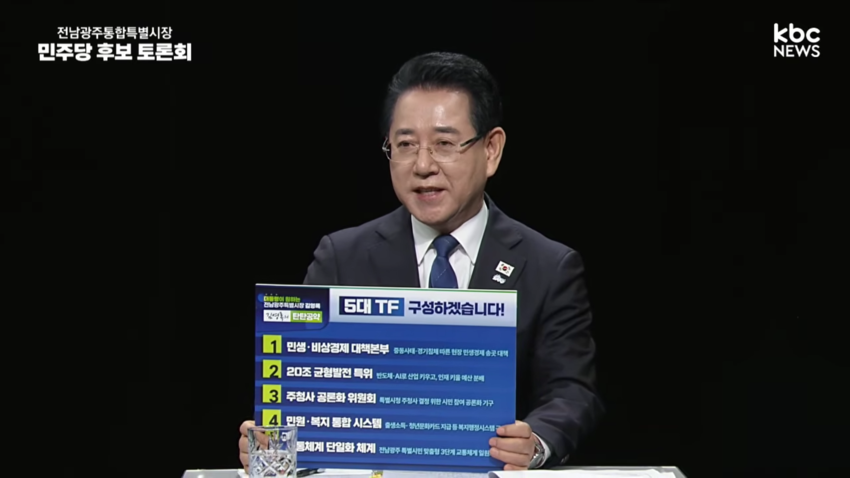 전남투데이 정홍균 기자 | 김영록 민주당 전남광주특별시장 예비후보는 25일 오후 열린 ‘KBC광주방송 민주당 후보자 합동 토론회’에서 “전남광주특별시 출범에 따른 갈등과 부작용 해소 및 지속가능한 발전을 위해서는 정치가가 아닌 ‘일 잘하는 행정가’가 필요하다”는 점을 부각시키는 데 주력했다. 자신이야 말로 ‘연습이 필요 없는’ 최고의 행정가로, 전남광주특별시장의 최적임자라는 얘기다.
