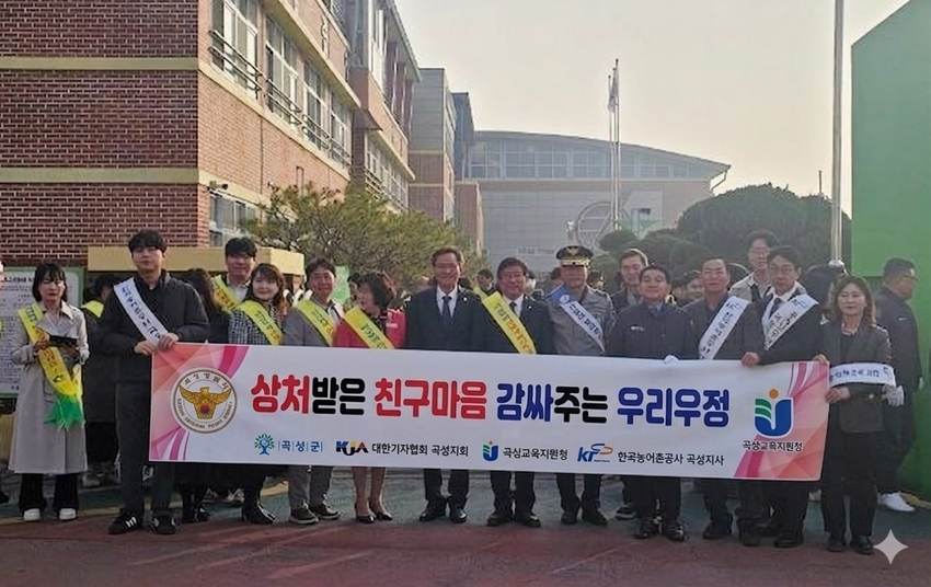 이번 캠페인에는 곡성경찰서, 곡성소방서, 곡성군의회 등 지역 사회단체 관계자들이 함께 참여해 학생들에게 학교폭력의 심각성과 안전의 중요성을 알리고, 서로를 배려하는 문화를 확산시키는 뜻깊은 시간을 가졌다.