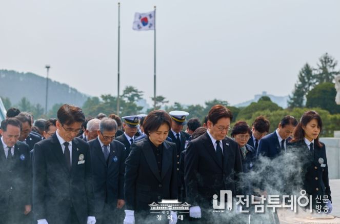 이 대통령은 "55인의 서해 수호 영웅들이 피와 땀으로 지켜낸 것은 단지 '바다 위의 경계선'이 아니라 우리가 걱정 없이 누리고 있는 오늘의 일상이자 우리의 후손들이 두려움 없이 꿈을 키울 수 있는 내일이었다"며 "이제 우리의 책임은 그들이 목숨으로 지켜낸 바다를 더 이상 '분쟁과 갈등의 경계'가 아니라 '평화와 번영의 터전'으로 전환하는 것"이라고 말했다.