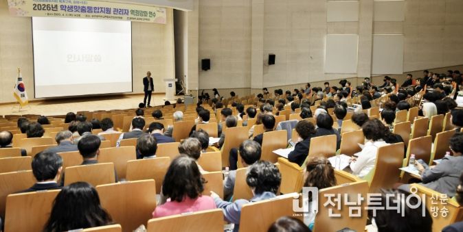 전남투데이 김경민 기자 | 광주시교육청은 2일 광주시민협치진흥원 대강당에서 본청 국‧과장, 교육지원청 교육장‧국장, 초‧중‧고‧특수학교 교장 330여 명을 대상으로 ‘2026년 학생맞춤통합지원 관리자 역량강화 연수’를 실시했다.