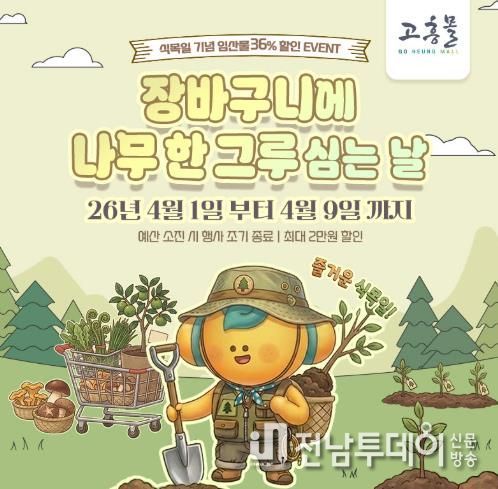 전남투데이 조평훈 기자 | 고흥군이 운영하는 온라인 쇼핑몰 ‘고흥몰’은 식목일을 맞아 4월 1일부터 9일까지 ‘장바구니에 나무 한 그루 심는 날’ 기획전을 운영한다고 밝혔다.