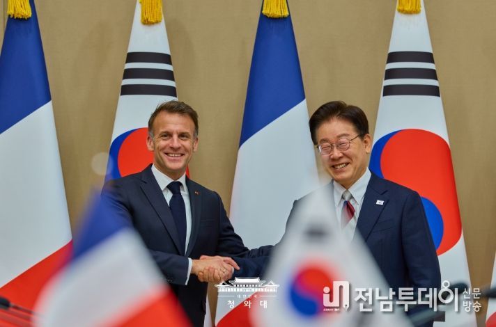 전남투데이 정홍균 기자 | 이재명 대통령이 3일 한·프랑스 정상회담을 마치고 "원자력·해상 풍력 분야의 협력을 확대해 에너지 안보를 강화하는 한편, 호르무즈 해협 내 안전한 해상수송로 확보를 위해 협력하겠다는 의지도 확인했다"고 밝혔다.