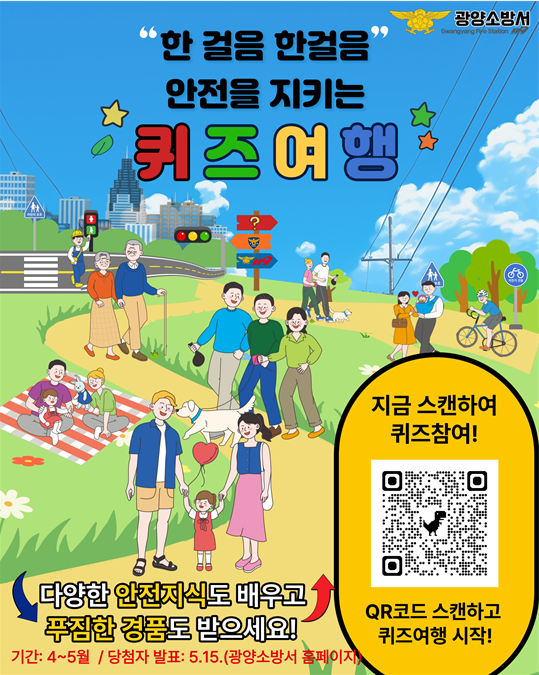 이번 시책은 남파랑길 48코스부터 51코스와 주요 산책로 등 시민과 관광객이 많이 찾는 장소를 중심으로 추진되며, 소방안전 퀴즈를 활용해 자연스럽게 화재예방과 안전상식을 익힐 수 있도록 기획됐다. 광양소방서는 이번 행사를 통해 시민과 소통하는 화재예방 분위기를 조성하고, 생활 속 안전문화 확산에 기여할 계획이다.