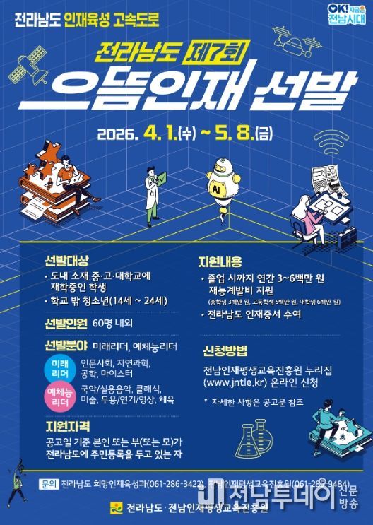박종필 전남도 인재육성교육국장은 “우수 인재가 지역에서 안정적으로 성장하도록 실질적 지원을 강화하겠다”고 말했다.