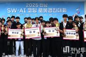 전남투데이 김용희 기자 | 전라남도는 청소년의 창의적 문제해결력과 인공지능 융합 역량을 한층 강화하는 위한 2025 전남 SW·AI 코딩 로봇경진대회를 지난 10월 31일까지 이틀간 나주 동신대학교에서 개최했다고 밝혔다. ‘도시의 문제를 해결하는 스마트 로봇’을 주제로 열린 이번 대회는 전남도, 전남도교육청, 나주시가 공동으로 주최하고 (재)전남정보문화산업진흥원이 주관했다. 전남 초·중·고등학생 30개 팀(90명)이 2인 1조로 참가해 일상에서 발견한 문제 해결을 위한 아이디어를 바탕으로 로봇 코딩 실력을 겨뤘다. 평가는 팀별 아이디어 과제 발표, 직접 제작한 로봇 경기로 진행됐다. 경진대회는 교구재를 사전 배부하고 교육해 경험이 부족한 학생들도 쉽고 즐겁게 참여할 수 있도록 하고, 소속 학교 지도교사의 피드백을 통해 로봇과 코딩에 대한 이해도를 높였다. 초등, 중등, 고등 부문별로 각각 대상 1팀, 최우수상 1팀, 우수상 1팀을 선정, (재)전남정보문화산업진흥원장상과 상금이 수여됐다. 대상은 ▲초등부 여수 여도초등학교(Y.E.S.1) ▲중등부 나주 영산중학교(평가문제집) ▲고등부 순천