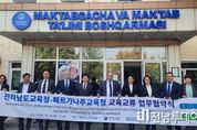 전남투데이 김용희 기자 | 전라남도교육청이 10월 27일부터 11월 1일까지 4박 6일간 우즈베키스탄과 카자흐스탄을 방문해 중앙아시아와의 국제 교육협력 강화 방안을 모색했다. 김대중 교육감을 비롯한 전남교육청 방문단은 이 기간 ‘글로컬 인재 양성과 국제교육 네트워크 구축’을 목표로 우즈베키스탄 페르가나주 교육청을 비롯한 학교, 고려인 협회 등을 공식 방문했다. 10월 28일에는 우즈베키스탄 페르가나주교육청과 교육협력 로드맵을 체결했다. 이번 협약을 통해 두 기관은 정례 협의회 운영, 학교·학생·교사 간 교류 확대, 한국어 교육 내실화, 유학생 유치 협력 등 실질적 협력 방안을 마련했으며, 상호 신뢰를 바탕으로 한 지속 가능한 교육교류의 토대를 구축했다. 특히, 별도의 면담에서는 2026년 개교 예정인 전남교육청의 전남미래국제고등학교의 외국인 유학생 교육 프로그램과 한국어·직업교육 과정이 소개됐으며, 페르가나주 내 학생들의 유학 참여를 확대하기 위한 협력 방안이 논의됐다. 김대중 교육감은 “전남미래국제고는 한국의 직업교육과 한국어교육을 결합해 세계 각국 학생이 함께 배우는 국제형 학교”라며, “페르가나 지역의 우