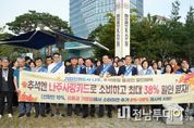 전남투데이 김윤걸 기자 | 전라남도 나주시가 추석 명절을 앞두고 지역 상권 활성화와 소상공인 매출 증대를 위해 공공기관, 기업, 상인회와 함께 대규모 소비 촉진 캠페인을 벌였다. 나주사랑카드 특별 할인과 상생페이백 행사 등 시민들에게 실질적 혜택을 홍보하고 지역경제에 활력을 불어넣고자 마련했다. 나주시(시장 윤병태)는 24일 오전 8시 한전KDN 사거리 일원에서 ‘지역상권 살리기, 소비 활성화 캠페인’을 열고 나주사랑카드 특별 할인, 상생페이백 행사, 관내 기업 생산품 홍보 등을 추진했다고 밝혔다. 이날 캠페인에는 윤병태 시장을 비롯해 나주시와 상생 자매결연을 맺은 한전KDN 박상형 사장, 사학연금 송하중 이사장과 한국전력공사, 한전KPS, 한국전력거래소, 한국농수산식품유통공사, 한국농촌경제연구원, 한국인터넷진흥원, 한국방송통신전파진흥원, 한국문화예술위원회, 한국콘텐츠진흥원 등 이전 공공기관 임직원 80여 명을 포함해 150여 명이 함께하며 지역 소비심리 회복에 힘을 모았다. 캠페인 주요 내용은 나주사랑카드 결제 시 최대 38% 특별 할인, 지역 상점 최대 30% 상생페이백, 관내 기업 생산품 애용