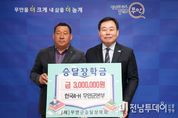 전남투데이 박세훈 기자 | 무안군은 지난 4일 지역 인재 양성을 위해 한국농어촌공사 목포·무안·신안지사(지사장 범필재)와 한국4-H 무안군본부(회장 김귀만)가 (재)무안군승달장학회에 장학금 500만 원을 기탁했다고 밝혔다. 이날 한국농어촌공사 목포·무안·신안지사는 장학금 200만 원을, 한국4-H 무안군본부는 장학금 300만 원을 각각 전달하며 지역 인재 육성을 위한 나눔에 동참했다. 한국농어촌공사 목포·무안·신안지사는 농어업 경쟁력 강화를 위한 다양한 사업을 추진하고 있으며, 지난 2022년부터 매년 승달장학금을 기탁하는 등 지역사회와 함께하는 사회공헌 활동을 이어오고 있다. 한국4-H 무안군본부는 4-H 이념인 ‘지·덕·노·체’를 바탕으로 도농 교류 행사, 농촌 드론 방제 활동, 무안YD페스티벌 봉사활동 등 다양한 실천 활동을 통해 지역사회 화합과 농촌 활력 증진에 기여하고 있다. 범필재 한국농어촌공사 목포·무안·신안지사장은 “지역의 미래를 이끌 인재들에게 작은 도움이 되길 바란다”며 “앞으로도 공기업으로서 지역사회와 함께하는 활동을 이어가겠다”고 말했다. 김귀만 한국4-H 무안군본