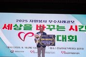 전남투데이 안철우 기자 | 전남 무안군은 지난 18일 전남여성가족재단에서 개최된 ‘2025 세상을 바꾸는 시간V 전남대회’에서 우수상인 한국중앙자원봉사센터장상을 수상했다. ‘세상을 바꾸는 시간V’는 자원봉사자가 봉사활동 현장에서 보고 느꼈던 경험을 토대로 우수사례를 발표하는 공모대회로, 도내 자원봉사를 확산시키고 자원봉사자의 역량과 자긍심을 높이기 위해 마련됐다. 이번 대회에서는 각 시군을 대표하는 12개 팀이 참가했으며, 무안군 발표자로 나선 이창준 자원봉사자는 봉사활동을 통해 느꼈던 기쁨과 보람, 그리고 지역사회와 함께 성장해온 경험을 진솔하게 전하며 참석자들의 큰 공감을 이끌어냈다. 특히 “작은 나눔이 모여 세상을 바꾸는 힘이 된다”는 메시지를 전하며 청중들에게 따뜻한 울림을 주었다. 장영선 사회복지과장은 “이번 수상은 우리 군 자원봉사자들의 헌신과 열정이 만들어낸 소중한 결실”이라며 “앞으로도 다양한 봉사활동을 통해 지역사회에 따뜻한 변화를 만들어가고, 자원봉사자들이 자긍심을 가지고 활동할 수 있도록 적극 지원하겠다”고 밝혔다.