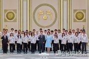 전남투데이 정홍균 기자 | 이재명 대통령은 5일 오후 2026 밀라노-코르티나 동계올림픽에 참가했던 대한민국 국가대표 선수단을 초청해 격려 오찬을 가졌다. 오늘 자리는 새 정부 출범 후 처음으로 치러진 올림픽대회에서 ‘한계를 뛰어넘은 도전’을 보여준 대한민국 국가대표 선수단에게 국민을 대표해서 감사를 전하는 자리였다. 이번 오찬에는 자신의 기록을 경신하거나, 스스로 한계를 극복해 국민께 감동을 준 국가대표 선수단과 지도자들, 정부 관계자와 종목 단체장 그리고 대회 기간 현지에서 선수들에게 따뜻한 식사를 제공했던 급식지원센터 조리사 등 100여 명이 초청됐다. 특히 대한민국 설상종목 첫 금메달리스트인 최가온 선수와 역대 최다 올림픽메달리스트인 최민정 선수, 이번 대회 MVP로 선정된 김길리 선수, 척추 부상을 극복하고 올림픽에 출전한 정승기 선수 등 각자의 스토리를 가진 선수들이 함께 했다. 이재명 대통령은 격려사를 통해 “여러분들이 대한민국의 자부심”이라면서 “선수들 덕분에 우리 국민들도 어려운 환경 속에서 힘을 얻고 희망을 노래할 수 있었다”고 감사를 표했다. 이어 “국가대표 선수 한 분 한 분이