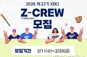 전남투데이 박세훈 기자 | KBO가 2월 11일(수)부터 2026 제 22기 KBO Z-CREW(제트크루)를 모집한다. KBO Z-CREW는 기존 ‘대학생 마케터’에서 명칭을 변경하고, 콘텐츠 제작 중심이 아닌 KBO 리그 전반에 참여하는 활동으로 운영 방향을 확대했다. KBO Z-CREW는 한 시즌 동안 KBO 리그의 미래 성장과 팬 경험 강화를 주제로 한 연간 프로젝트를 진행하며, Z세대 관점에서 KBO 리그의 중·장기적 방향성과 신규 사업 아이디어를 제안하고 기획하는 역할을 수행하게 된다. 참여 대학생들은 팀 단위 프로젝트를 통해 KBO 리그 관련 주제를 분석하고, 정기적인 제언과 토의를 통해 실질적인 결과물을 도출할 예정이다. 아울러 KBO 주최 주요 행사 참여를 통해 현장 경험을 쌓고, 프로젝트 결과물과 연계한 콘텐츠 제작 활동도 병행한다. 이를 통해 콘텐츠 제작 중심의 기존 운영 방식에서 나아가, 기획·분석·제언 중심으로 활동 비중을 조정할 예정이다. 이외에도, 프로스포츠 산업 전문가 멘토링 및 정기 회의를 통해 프로스포츠 산업에 대한 전반적인 이해를 돕고, KBO 리그의 발전 방향에 대