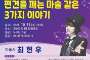 전남투데이 강영선 기자 | 화순군은 오는 10월 15일 수요일 오후 3시, 화순군청 4층 대회의실에서 '2025 군민행복 아카데미 8회차 강연을 개최한다고 밝혔다. 이번 강연에는 국내 최고의 마술사 최현우가 강연자로 나선다. 최현우 마술사는 세계마술협회(FISM) 클로즈업 부문 심사위원을 역임했으며, ‘최현우 매직 컬 더 셜록’ 전국투어 공연과 다양한 방송 프로그램 출연을 통해 대중에게 마술의 매력을 널리 알려온 인물이다. 그는 이번 강연에서 “편견을 깨는 마술 같은 3가지 이야기”라는 주제로 마술과 실제 경험을 바탕으로 일상 속 고정관념과 편견을 깨는 방법을 소개한다. 특히 세 가지 사례를 중심으로 마술적 사고와 창의적인 접근이 삶의 시야를 어떻게 넓힐 수 있는지를 전달할 예정이다. 조미화 화순군 인구청년정책과장은 “최현우 강사의 흥미로운 강연을 통해 군민 여러분이 편견을 깨는 새로운 시각과 창의적 사고를 경험하시길 바란다”라고 전했다. 한편, 군민행복 아카데미는 군민에게 평생학습의 기회를 제공하기 위해 다양한 분야의 명사를 초청해 진행하는 강연 프로그램으로, 별도의 신청 없이 누구나 자유롭게 참