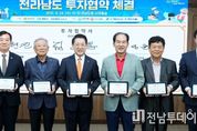 전남투데이 손영욱 기자 | 전라남도는 24일 도청 서재필실에서 ㈜성경식품, ㈜해진수산, ㈜해진식품 등 3개사와 투자금액 총 1천34억 원 규모의 투자협약을 했다고 밝혔다. 이번 투자로 302명의 신규 고용 창출도 기대된다. 이날 협약식에는 김영록 전남도지사를 비롯해 육현진 ㈜성경식품 대표, 김성윤 ㈜거해 대표, 임한택 ㈜해진수산·㈜해진식품 대표, 김희수 진도군수, 윤재광 영암부군수 등이 참석했다. ㈜성경식품은 자반김 전문업체 ㈜거해와 합작해 500억 원을 투자, 진도 군내농공단지에 생산시설을 구축한다. 최첨단 설비와 스마트 자동화 공정을 도입해 강화된 글로벌 위생 기준에 대응해 진도공장을 글로벌 수출 전진기지로 육성할 계획이다. 향후 조미김 등 완제품 가공 분야까지 투자 범위를 확대해 김 산업의 부가가치를 높여갈 예정이다. ㈜해진수산과 ㈜해진식품은 534억 원을 투입, 영암군에 마른김·조미김 생산라인을 구축한다. 해남에서 레미콘 기업을 운영해 온 임한택 대표의 식품산업 진출 사례로, 지역 내 식품 분야 투자 다각화를 촉진하는 모범 모델이 될 것으로 주목된다. 전