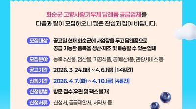 화순군, 2026년 고향사랑기부제 답례품 공급업체 모집