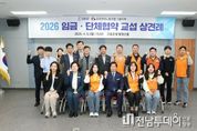 전남투데이 조평훈 기자 | 고흥군과 공공연대노동조합은 지난 6일 군청 팔영산홀에서 2026년 임금·단체협약 체결을 위한 상견례를 개최하고 본격적인 교섭에 들어갔다. 이번 상견례는 노사 간 상호 이해와 신뢰를 바탕으로 원활한 교섭을 추진하기 위한 자리로, 공영민 군수를 비롯해 문화현 공공연대노동조합 전남본부장, 김혜영 공공연대노동조합 고흥지부장, 교섭위원 등 19명이 참석했다. 특히 올해는 지난해 임금협약 중심 교섭과 달리 임금과 단체협약을 병행하는 교섭으로, 근로조건 전반에 대한 폭넓은 논의가 이뤄질 예정이어서 의미를 더하고 있다. 이날 상견례에서는 양측 대표 인사의 인사말을 통해 상호 존중과 신뢰를 바탕으로 성실한 교섭을 이어가겠다는 의지를 공유하고, 향후 교섭 일정과 주요 현안에 대해 의견을 나눴다. 고흥군과 공공연대노조 고흥지부는 그동안 지속적인 소통과 협력을 통해 안정적인 노사관계를 유지해 왔으며, 이러한 기반 위에서 합리적이고 발전적인 협약 체결을 추진해 나갈 계획이다. 공영민 군수는 “노사 간 신뢰와 소통이 무엇보다 중요한 만큼 서로를 존중하는 자세로 교섭에 임해주길 바란다