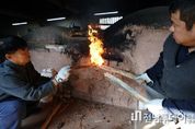 전남투데이 박동운 기자 | 제54회 강진청자축제가 오는 21일 개막을 앞두고 있는 가운데 12일 전남 강진군 대구면 고려청자박물관 제2호 가마에서 도공들이 전통 방식을 그대로 재현하며 소나무 장작을 이용해 불을 지피고 있다. 1300°C의 온도로 정성껏 불을 지펴 구워진 청자는 오는 22일 세상의 빛을 보게 된다.