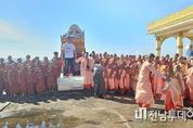 전남투데이 조평훈 기자 | 광양시는 시 홍보대사이자 국제환경운동가인 ‘맨발의 사나이’ 조승환 씨가 지난 11월 13일 미얀마 고마다 사원(Gomada Temple) 에서 열린 식수 우물 준공식에 초청돼 ‘얼음 위 맨발로 서 있기’ 5시간 30분을 기록하며 세계신기록을 경신했다고 밝혔다. 깊이 1,000m의 식수 우물은 총 2,200만 원의 후원금으로 완공됐으며, 이 중 조승환 씨가 ㈜진행워터웨이와 모델 계약을 체결하며 받은 모델료 1,700만 원 전액을 기부했다. 나머지 금액은 ▲정인화 광양시장 ▲가수 김다현 ▲박향진 호원종합병원 이사장 ▲정규성 양평축산농협 조합장 ▲김기윤 판다팜 회장 ▲이성현 민물장어양식수협 조합장 ▲이명렬 동광사우 대표 ▲이은영 은영씨의꽃피는바다 대표 ▲이병노 가원농원 대표 ▲방송인 노민 ▲양평군 소재 옥불사 등 여러 인사와 단체가 뜻을 모아 마련했다. 고온다습한 기후와 불안정한 상수도 시설로 식수가 부족한 미얀마에서, 이번 우물 조성은 안정적인 식수 공급과 위생환경 개선에 실질적인 도움을 줄 것으로 기대된다. 정인화 광양시장은 “국제환경운동가로 활약 중인 광양시 홍보대사 조승