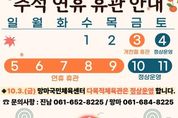 전남투데이 조평훈 기자 | 여수시는 추석 연휴 기간 영락공원을 찾는 추모객이 크게 늘어날 것으로 예상됨에 따라 운영시간을 일부 연장하고 휴무일·이용수칙을 조정한다. 시는 추모객 편의를 위해 영락공원 ‘추모의 집’ 운영시간을 조정했다. 10월 3~4일, 8~9일은 기존대로 오전 8시부터 오후 5시까지 운영하며, 5~6일은 오전 7시부터 오후 6시까지, 7일은 오전 7시부터 오후 5시까지로 연장 운영한다. 장사시설(화장)은 추석 당일인 10월 6일에만 휴무하며 그 외 기간은 정상 운영된다. 추모의 집 내 ‘제례단’은 연휴 기간 정상 운영하되 원활한 이용을 위해 한 가족당 20분 이내로 이용 시간을 제한한다. 또한 여수시는 일회용품 및 조화 사용 자제 등 영락공원 이용수칙을 홍보하고 연휴 기간 교통 혼잡 해소를 위해 대중교통 이용을 권장할 계획이다. 추모객들에게는 운영 일정과 이용수칙이 문자메시지로 안내된다. 시 관계자는 “추석 당일은 방문이 집중될 것으로 예상되며 연장된 운영시간을 적극 활용해 달라”며 “깨끗하고 질서 있는 추모 문화 정착에 시민 여러분의 협조를 부탁드린다”고