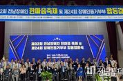 전남투데이 손영욱 기자 | 전라남도는 지난 9월 30일 영광스포티움국민체육센터에서 제32회 전남장애인한마음축제와 제24회 장애인동거부부 합동결혼식을 성황리에 개최했다고 밝혔다. 한국지체장애인협회전남협회가 주관한 이날 행사에는 장세일 영광군수, 장애인 유관단체장 및 회원 등 1천500여 명이 참석한 가운데 성황리에 개최됐다. 행사는 기념식을 시작으로 합동결혼식과 어울림 한마당이 다채롭게 펼쳐졌다. 기념식에는 장애인 복지증진에 기여한 공로를 인정받은 15명이 도지사상을, 5명이 영광군수상을 받았다. 합동결혼식에서는 어려운 여건으로 결혼식을 미뤄왔던 14쌍의 장애인 부부가 백년가약을 맺고 많은 이들의 축복 속에 새로운 출발을 알렸다. 어울림 한마당에서는 문화공연과 함께 장애인이 직접 참여하는 프로그램 등을 통해 장애인과 이웃이 함께 소통하고 어울리는 뜻깊은 시간을 가졌다. 정광선 전남도 보건복지국장은 “이번 축제가 장애 구분 없이 도민 모두가 어울리는 화합의 장으로, 장애 인식 개선의 계기가 되길 바란다”며 “앞으로도 장애인 모두가 체감할 수 있는 복지정책을 펼쳐나가도록 최선을