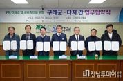 전남투데이 강길수 기자 | 구례군은 친환경 농업의 가치를 확산하고 쌀 소비 기반을 강화하기 위해 공공·금융·농협·민간이 참여하는 다자간 업무협약을 지난 12월 26일 군청 상황실에서 체결했다. 이날 협약식에는 김순호 구례군수를 비롯해 ▲구례군의회 ▲탄소중립흙살리기운동본부 ▲한국농식품벤처투자협회 ▲구례농협 ▲(주)풀과나무 ▲그린올린(주) 등 친환경 농업과 유통·소비 촉진에 뜻을 함께하는 기관과 단체가 참여했다. 이번 협약을 통해 참여기관들은 친환경 쌀의 안정적인 생산과 유통, 소비 확대를 위한 협력체계를 구축하고, 지속 가능한 지역 농업 발전을 위해 상호 협력해 나가기로 했다. 협약의 주요 내용은 ▲친환경 쌀의 안정적 생산·유통 및 소비 기반 구축 ▲공공부문 쌀 소비 확대와 민간 소비처 발굴을 통한 판로 다각화 ▲친환경 쌀 소비 촉진을 위한 홍보 및 교육 협력을 통한 소비자 인식 제고 ▲농식품 분야의 정책자금 지원과 금융 컨설팅 연계를 통한 지속 가능한 쌀 생산 기반 강화 등이다. 특히, 구례군은 공공 급식과 공공기관을 중심으로 친환경 쌀 소비를 확대하고, 민간 유통망과 기업·단체를 연계한 새로운 소