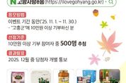 전남투데이 조평훈 기자 | 고흥군은 유자향이 가득한 11월을 맞아 고향사랑기부제 참여자에게 감사의 마음을 전하기 위해 ‘고흥애(愛) 연말정산 이벤트’를 11월 30일까지 운영한다고 밝혔다. 이번 이벤트는 연말정산 시즌을 앞두고 기부자들의 관심이 높아지는 시기에 맞춰 마련된 것으로, 기간 내 고흥군에 10만 원 이상 기부한 참여자 중 500명을 무작위로 추첨해 다이소 모바일 상품권(1만 원권)을 증정한다. 군은 이번 행사를 통해 연말정산 시 세액공제 혜택(10만 원 전액, 초과분 16.5%)을 다시 한번 알리고, 고흥의 대표 농수특산물 답례품을 함께 홍보할 계획이다. 답례품으로는 ▲2025년산 햅쌀 ▲향기로운 유자 제품 ▲김 ▲고흥 한우 ▲나로도 삼치회 등 청정 고흥을 대표하는 품목이 인기를 끌고 있다. 특히 11월에는 고흥유자축제(11.6.~9.)와 연계한 현장 홍보를 강화해 향우와 관광객을 대상으로 기부 참여를 독려할 예정이다. 군 행정과 관계자는 “고흥의 유자향처럼 따뜻한 마음이 전국으로 퍼져나가길 바란다”며 “기부금은 아동·청소년 복지, 문화·의료 인프라 확충 등 군민의 삶의 질