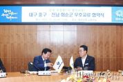 전남투데이 강영선 기자 | 화순군은 지난 10월 10일 경기도 용인특례시와 자매결연을 체결한 데 이어 10월 29일 대구광역시 중구와 상호 협력과 공동 발전을 위한 우호교류 협약식을 개최했다고 밝혔다. 이번 협약은 두 지역이 보유한 풍부한 인프라를 기반으로 활발한 교류를 추진해 생활 인구 확대와 지역경제 활성화, 지방 소멸 위기 공동 대응을 도모하기 위해 마련됐다. 이날 협약식에는 구복규 화순군수와 류규하 대구 중구청장, 오형열 화순군의회 의장, 김동현 대구중구의회 의장을 비롯한 주민자치회, 새마을회 대표 등 민관이 함께 참석하여 그 의미를 더했다. “함께 새롭게! 더 행복하게!”를 주제로 진행된 협약식에서 두 지자체는 문화·관광·체육·경제·교육·행정 등 다양한 분야에서 상호 교류와 협력을 추진하기로 했다. 특히 대표 축제 교차 홍보 및 상호 방문 등 실질적이고 지속 가능한 교류사업을 발굴해 나아갈 예정이다. 우호교류 협약을 기념해 화순군은 지역 대표 특산품인 샤인머스켓과 불미나리즙을, 대구 중구는 국가 무형유산인 단청장 보유자가 제작한 단청 공예품과 약령시에서 생산한 약령황제단을 선물했다. &n