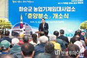 전남투데이 강영선 기자 | 화순군은 30일 오후 2시 농업기계 임대사업소 춘양분소 개소식을 개최해 오는 11월 3일부터 본격 운영에 들어간다고 밝혔다. 이날 개소식에는 구복규 화순군수, 오형열 군의회 의장, 박용철 전라남도 농업기술원장, 유덕규 전라남도 농축산식품국 식량원예과장 등을 비롯한 인근 지역 주민 100여 명이 참석한 가운데 춘양분소 개소를 축하하고 주요시설을 둘러봤다. 춘양분소는 춘양면 석정리 112번지 일원 8,315㎡ 부지에 1동/2층(건축연면적 980㎡)의 건물을 신축하고, 임대용 농업기계 31종/58대(관리기 등)를 비치했다. 또한 농업인을 대상으로 매년 10회 이상 추진되는 농업기계 안전사용 교육 시 이론과 실습 교육이 가능한 30명 수용의 교육실과 농업용 굴착기 및 트랙터 등 부피가 큰 농업기계의 조작 실습을 할 수 있는 2,000㎡ 규모의 농업기계 실습장을 갖추었다. 화순군은 이번 춘양분소 개소로 13개 읍면에 총 3개소의 농업기계 임대사업소가 운영되고 있으며, 사용자는 농작업 농경지에서 가장 가까운 사업장을 찾아 농업기계를 임대하거나, 배송 서비스를 지원받을 수 있게 됐다.