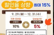 전남투데이 박동운 기자 | 강진군은 9월29일부터 12월31일까지 강진사랑상품권 할인율을 상향 조정한다고 24일 밝혔다. 추석 명절 맞이 및 지역경제 회복을 위해 마련된 할인 혜택은 지류 및 모바일(착) 강진사랑상품권 구매 시 선할인 10%이며, 기간 중 모바일(착) 사용 시 후캐시백 적립 5%로 총 15% 할인 혜택을 받을 수 있다. 구매 한도는 월 70만 원으로 동일하다. 다만, 모바일(착) 상품권 후캐시백은 매월 1억 원을 투입할 예정으로 예산소진 시 운영이 종료되므로 혜택을 받기 위해서는 빠르게 소비하는 것이 유리하다. 관내 모바일(착) 상품권은 음식점, 전통시장, 주유소, 미용실, 병원, 마트 등 지역 내 1,600여 개의 가맹점에서 사용할 수 있다. 자세한 가맹점 안내는 강진군 홈페이지 및 지역상품권 chak(앱) ‘가맹점 찾기’에서 확인할 수 있다. 모바일(착) 상품권 한 이용자는 “상품권을 충전할 때 10% 할인받는 것도 좋지만, 결제할 때마다 캐시백을 적립해 주니 쓰는 재미가 있어서 착을 더 이용한다”며 “명절 연휴뿐만 아니라 3개월동안 15% 할인혜택을 받