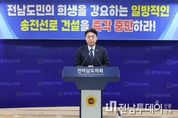 전남투데이 김용희 기자 | 전라남도의회 농수산위원회 류기준 의원(더불어민주당·화순2)은 2월 9일 제396회 임시회 폐회 직후 열린 성명 발표에 동참해, 송전선로 건설을 둘러싼 전남 지역의 구조적 문제를 공론화하는 데 뜻을 함께했다. 이날 도의원 일동은 성명서를 통해 “정부와 한국전력이 추진 중인 국가기간 전력망 확충 정책이 전남 지역에 과도한 부담을 초래하고 있다”고 지적하며, “전남도민의 생존권과 환경권을 침해할 우려가 있는 송전선로 건설 계획에 대해 전면적인 재검토와 에너지 정책의 방향 전환이 필요하다”는 입장을 밝혔다. 성명서에 따르면 정부는 국가기간 전력망 확충을 이유로 전국에 총 99개의 송전선로와 변전소 건설을 추진하고 있으나, 이 가운데 약 38%가 호남 지역에 집중돼 있다. 특히, ‘에너지 고속도로’ 사업으로 신안해상풍력~신장성~신정읍, 신해남~신장성, 신해남~신강진 등 초고압 송전선로가 장성·해남·영암·강진·화순 등 전남 다수 지역을 관통할 예정이다. 도의회는 이러한 사업 구조가 전남에서 생산된 전력을 수도권 반도체 국가산단 등에 공급하는 데 초점이 맞춰져 있는 만큼, 산림 훼손과