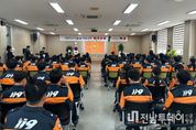 전남투데이 조평훈 기자 | 여수소방서는 9월 19일 본서에서 소방공무원의 현장대응 능력 향상과 안전한 소방문화 정착을 위한 2025년 9월 중 직장교육훈련을 실시했다. 여수소방서는 소방공무원들의 역량 강화를 위해 분기별로 다양한 주제를 선정해 체계적인 직장교육을 꾸준히 실시하고 있다. 이번 교육은 성가롤로병원 김재혁 권역응급의료센터장을 초청해 소방공무원 약 90명을 대상으로 진행했으며, 국가산단이 위치한 여수시에 특화적인 화학사고 발생 시 초기 대응과 처치법을 교육했다. 또한 119구조대에서는 화학사고 대응장비 시연 및 사용법 교육을 중점적으로 실시했다. 부서별로 당면 현안업무 전달하는 시간을 가졌으며 직무 분야별 전문교육 등 또한 함께 이어졌다. 김재혁 센터장은 “화학사고는 초기 대응이 무엇보다 중요합니다. 오늘 교육을 통해 실제 현장에서 바로 활용할 수 있는 대응 요령과 처치법을 익히는 계기가 되길 바랍니다. 앞으로도 소방 대원들의 안전과 전문성 강화를 위해 적극 지원하겠습니다”라고 말했다. 또한 교육에 참여한 한 구급대원은 “현장에서 바로 적용할 수 있는 실질적인 내용을 배울 수 있어 매우 유익한 시간이었다”고 소감을