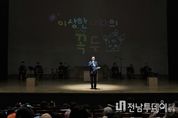 전남투데이 김윤걸 기자 | 전라남도 나주시가 예술과 전통이 어우러진 종합예술극 ‘이상한 나라의 꼭두’를 성황리에 선보이며 시민들에게 깊은 감동을 선사했다. 이번 공연은 문체부가 주관한 ‘2025년 공연예술 지역유통 공모사업’ 시리즈의 세 번째 무대로 수준 높은 공연예술을 통해 지역 문화 향유 기회를 확대한 뜻깊은 자리였다. 나주시는 지난 14일 나주문화예술회관에서 열린 종합예술극 ‘이상한 나라의 꼭두’가 시민들의 큰 호응 속에 막을 내렸다고 17일 밝혔다. 이번 공연은 문화체육관광부와 예술경영지원센터가 주관한 ‘2025 공연예술 지역 유통지원사업’의 일환으로 앞서 선보인 오페라 ‘사랑의 묘약’, 창작무용 ‘내 안의 물고기(My Inner Fish)’에 이은 세 번째 기획공연이다. ‘이상한 나라의 꼭두’는 루이스 캐럴의 고전 ‘이상한 나라의 앨리스’를 모티브로 전통 꼭두문화를 접목해 소녀 ‘이수’의 성장 이야기를 담아냈다. 판소리 기반의 창작 음악과 무용, 연기, 타악 등 다양한 장르가 결합된 총체극으로 한지 탈과 장대 인형, 대형 종이 오브제 등 독창적인 무대 연출이 관객의 눈길을 사로
