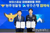 전남투데이 정홍균 기자 | 광주은행은 14일, 광주경찰청과 ‘보이스피싱 피해 예방을 위한 업무협약(MOU)’을 체결했다고 밝혔다. 이번 협약은 최근 지역 내에서 급증하고 있는 보이스피싱 범죄에 대응하기 위해, 단순한 사후조치가 아닌 ‘사전예방 중심의 공조체계’를 구축하는 데 목적이 있다. 양 기관은 협약을 통해 ▲정기적 간담회 개최 ▲피해 의심 계좌 모니터링 및 112 신고 협조 강화 ▲보이스피싱 예방 정책 발굴 및 시범운영 ▲합동 홍보·교육 캠페인 전개 등 실질적이고 지속 가능한 공동 대응 방안을 추진하기로 했다. 최근 금융기관을 악용한 대포통장 유통과 해외 조직 연계 범죄가 잇따르며 지역민의 피해가 확산되는 가운데, 광주은행은 지역민의 자산을 안전하게 보호하기 위한 예방 시스템을 강화하고 있다. 이를 위해 광주은행은 체계적인 보이스피싱 예방시스템을 구축하여 전담인력을 운영하고 FDS(이상금융거래탐지시스템) 모니터링을 강화하는 등 내부통제 기능을 한층 고도화하고 있다. 또한 영업점 창구직원 대상 대응교육과 함께 ‘찾아가는 보이스피싱 예방교육’ 캠페인을 지속적으로 전개하며, 지역사회와 함께하는 보