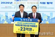 전남투데이 김경민 기자 | 광주은행은 22일 광주광역시청에서 강기정 광주광역시장, 정일선 광주은행장, 염규송 광주신용보증재단 이사장 및 관계자가 참석한 가운데 ‘2026년 소상공인 특례보증 대출 지원사업 협약’을 체결했다고 밝혔다. 이번 협약을 통해 광주은행은 고금리와 경기침체 등으로 어려움을 겪는 광주지역 소상공인(골목상권)에 대한 금융지원 확대를 위해 23억 원을 특별출연했다. 이를 재원으로 광주신용보증재단은 총 466억 원 규모의 특례보증을 지원하며, 광주광역시는 1년간 3~4%의 이차보전을 지원할 계획이다. 소상공인 특례보증 융자 지원 대상은 유흥·도박·사행성 업종 등 일부 업종을 제외한 광주지역 소재 소기업·소상공인·자영업자 전 업종이며, 업체당 최대 5천만 원까지 지원받을 수 있다. 대출 기간은 7년 이내다. 보증 신청은 오는 26일부터 광주은행 ‘Wa뱅크’ 앱과 광주신용보증재단 ‘보증드림’ 앱을 통한 비대면 방식으로 가능하다. 비대면 신청이 어려운 경우에는 광주신용보증재단 영업점을 방문해 대면 신청도 가능하다. 한편 광주은행은 2020년부터 현재까지 광주광역시 소상공인(골목상권)을 위해