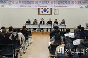 전남투데이 김경민 기자 | 광주시교육청은 22일 동부교육지원청 대회의실에서 광주·전남 교육행정통합 동부권 교육가족 공청회를 개최했다. 이번 공청회는 광주·전남 행정통합 논의가 급물살을 타는 가운데, 교육행정 체계 변화에 따른 현장의 우려를 해소하고 각계각층의 의견을 정책에 반영하기 위해 마련됐다. 행사장에는 관내 교직원과 학부모, 시민 등 200여 명이 참석해 교육행정 통합에 대한 뜨거운 관심을 확인했다. 공청회에 참석한 학부모와 교직원들은 통합 후 교원 인사의 안정성 확보 방안, 지역 간 교육 격차 해소를 위한 실질적 대책, 통합 과정에서 발생할 수 있는 행정적 혼선 방지 등의 궁금증과 의견을 제시했다. 현장에 참여한 한 학부모는 “행정통합과 교육통합은 다른 문제로 충분한 논의과정이 필요하다”며 “우리 학생들이 피해받지 않도록 이번에는 광주‧전남별로 각각 교육감을 선출하고 교육통합을 계속 논의하자”고 말했다. 또 다른 교사는 “특별법에 담긴다고는 하지만 교원들의 인사 불안은 여전하다”며, “교육 구성원들 간의 숙의를 위한 시간이 필요하며, 당분간은 현행대로 광주와 전남교육청이 각기