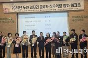 전남투데이 김용희 기자 | 전라남도는 6일 나주 동신대학교에서 도와 시군, 노인 일자리 수행기관 관계자 200여 명이 참석한 가운데 2025년 노인 일자리 종사자 직무역량 강화 워크숍을 열어 지역 맞춤형 노인 일자리 지속가능 전략을 모색했다. 전남도는 올해 노인 일자리와 사회활동 지원사업으로 사업비 2천706억 원을 지원, 현재 어르신 6만 7천234명이 참여하고 있다. 이날 워크숍에선 시니어클럽·노인회·노인복지관 등 노인 일자리사업 수행기관 85개소 종사자의 전문성을 강화하고 다양한 노인 일자리 유형을 지속해서 발굴하기로 했다. 또한 유공자 14명과 수행기관 1개소에 도지사 표창장을 수여했다. 다른 시·도 우수사례 공유 시간에는 시니어클럽 공동체사업단 운영 사례로, 충북 음성 김경섭 시니어클럽 관장이 ‘농촌 베이커리 모델과 카페 이야기’, 전북 임실 김윤호 시니어클럽 관장의 ‘혼자서는 못갑니다. 행복한 밥상’을 발표해 참석자들의 큰 관심과 호응을 얻었다. 정광선 전남도 보건복지국장은 “그동안 노인 일자리사업 수행에 헌신한 수행기관 종사자의 노고에 감사드린다”며 “2026년