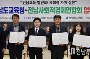 전남투데이 김용희 기자 | 전라남도교육청과 전남사회적경제기업연합회(전남사회적기업협회, 전남마을기업협의회, 전남자활기업협회)는 12월 5일 전라남도교육청에서 ‘건강한 교육환경 조성 및 지역사회와 상생발전을 위한 업무협약’을 체결했다. 양 기관은 이번 협약을 통해 전남교육 발전 및 사회적 가치 실현을 위해 협력을 강화하기로 했다. 이번 협약을 통해 양 기관은 ▲ 전남사회적경제연합회의 생산품 구매 및 판로 확대 지원 ▲ 지역의 미래와 희망을 만드는 사회적경제 교육 위탁 ▲ 창의적 체험활동 및 직업체험 프로그램 운영 ▲ 인적ㆍ물적 자원 활용에 대한 정보 교환 및 연계 등을 상호 협력해 추진키로 했다. 전남교육청은 이번 협약을 계기로 지역에서 활동하는 전남사회적경제연합회가 교육의 동반자로서 학생들이 지역에서 배우고 성장할 수 있는 협력 모델이 되기를 기대한다. 김대중 전남교육감은 “오늘 협약이 전남교육의 경쟁력을 높이는 중요한 계기로 이어지기를 바란다.”면서 “앞으로도 지역과 함께 성장하는 교육, 사람과 사람을 잇는 따뜻한 교육 실현을 위해 사회적경제연합회와 협력을 강화하겠다.”고 말했다.